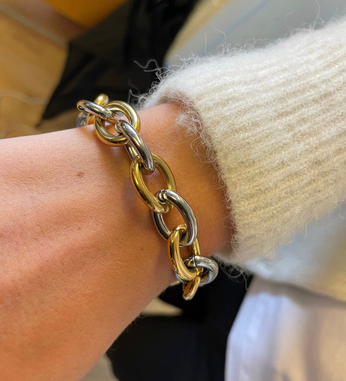 Stålarmband med 18K förgyllning 17+7 cm